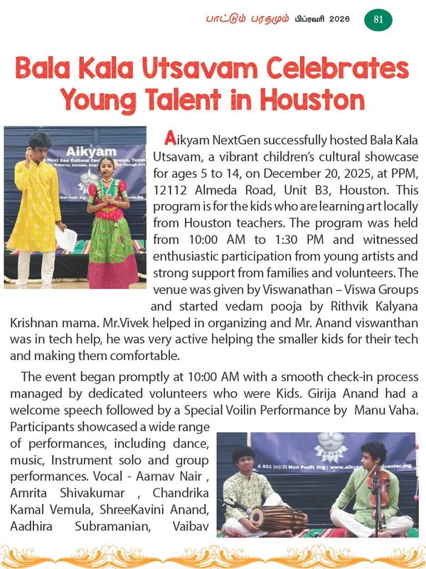 Aikyam's Bala Kala Utsavam was recognized by Paatum Bharathamum Digital Edition