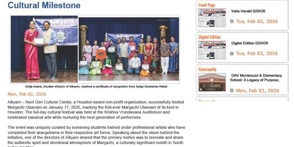 Aikyam's Margazhi Utsavam was recognized by Honorable Surendran Pattel, Judge - 240th Judicial District Court